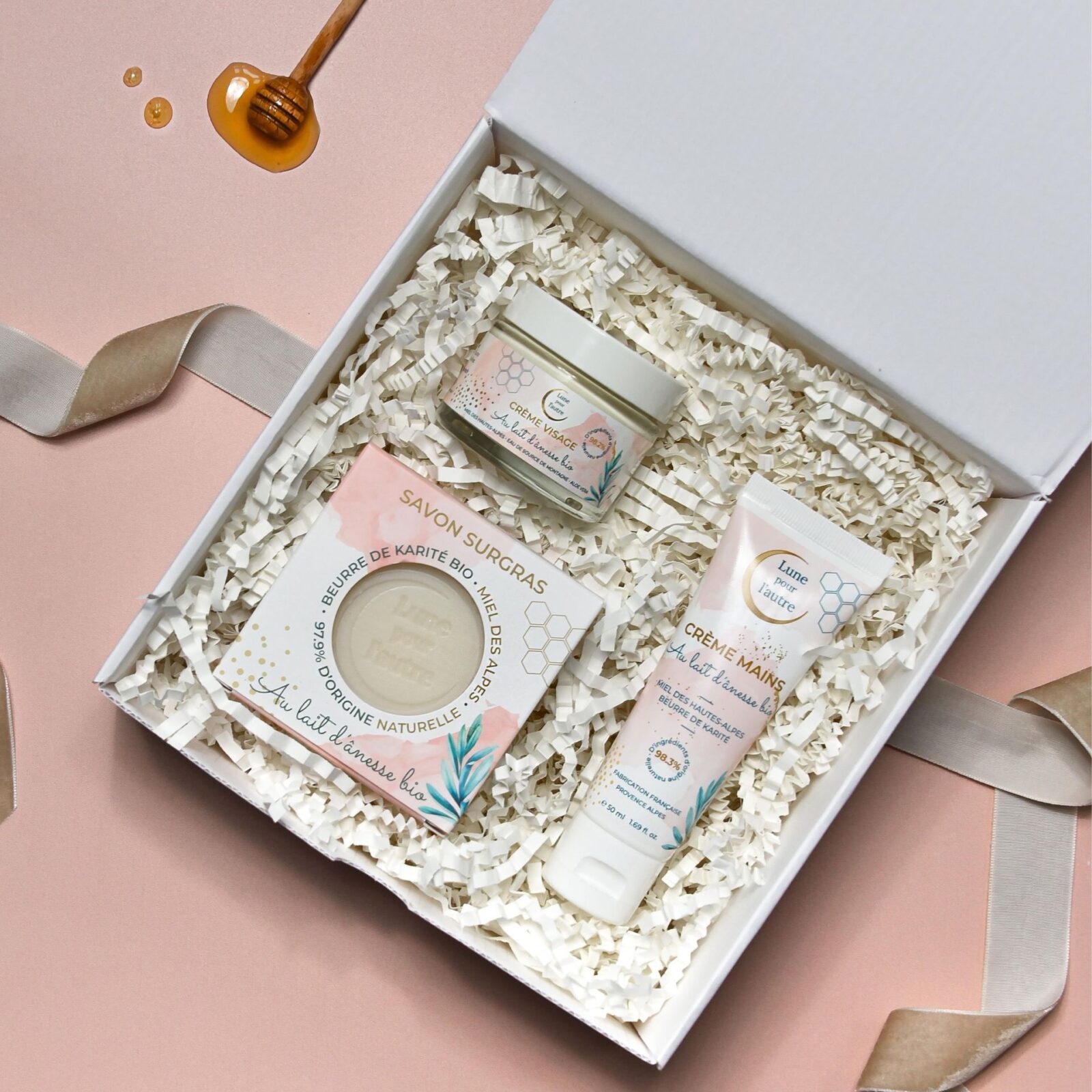 Offrez un véritable rituel de douceur avec notre coffret soin à base de lait d’ânesse bio, enrichi en miel des Hautes-Alpes et en beurre de karité. Pensé pour les peaux sensibles et sèches, ce trio de soins naturels nettoie, nourrit et protège la peau au quotidien.