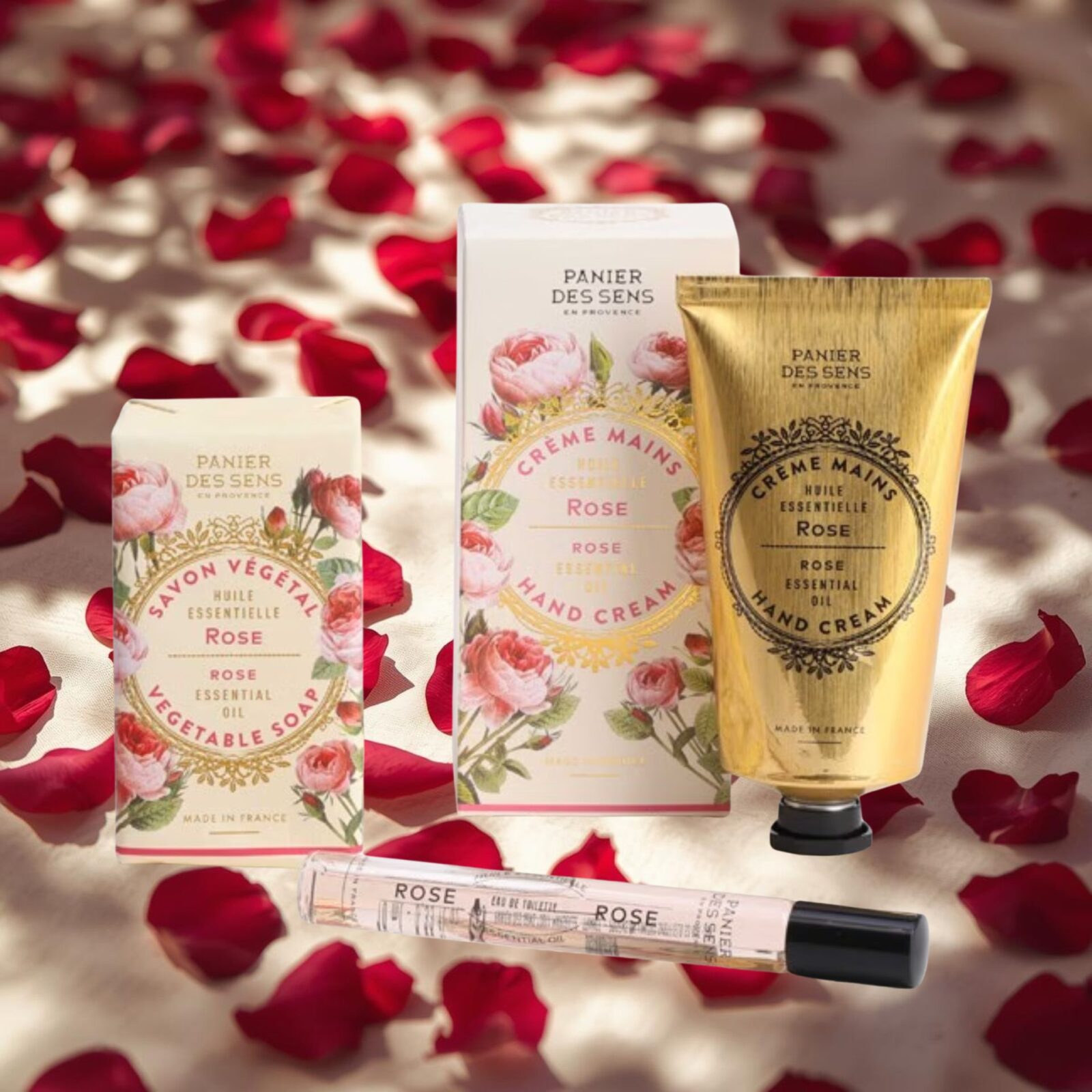 Célébrez la reine des fleurs avec ce coffret Panier des Sens à l’huile essentielle de rose de Grasse. Un rituel parfumé pour habiller la peau de notes fraîches et veloutées : roll-on eau de toilette 10 ml, crème mains 75 ml, savon 150 g.