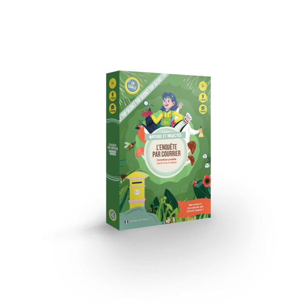 L’Enquête par Courrier plonge les 7-12 ans dans l’Académie des Enfants Espions. Sur le thème de la nature et des insectes, l’enfant aide l’Agent A.S.T.R.A.U.X. à résoudre énigmes et défis créatifs, puis envoie ses découvertes par courrier. Une aventure immersive, sans écran, clé en main.