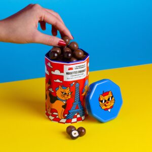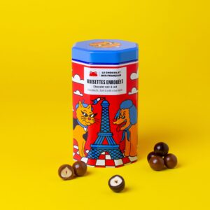 Noisettes grillées à cœur et enrobées d’une fine couche de chocolat noir ou au lait. Craquantes et gourmandes, elles offrent un délicieux équilibre entre le croquant des noisettes et la douceur du chocolat. Fabriquées à Marseille, avec des fèves de cacao d’Afrique de l’Ouest.